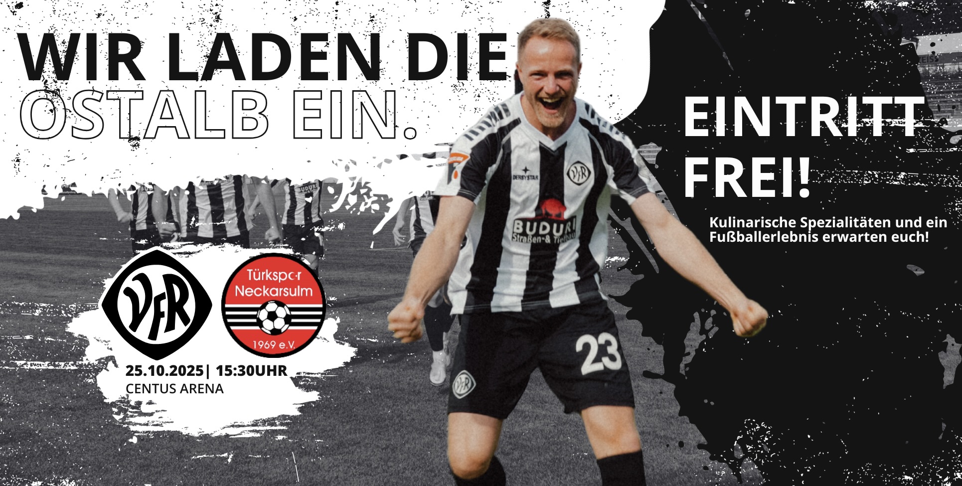 wir öffnen unsere Stadiontore und laden euch alle herzlich ein: Unter dem Motto „Die Ostalb zu Gast beim VfR!“ feiern wir am Samstag, den 25.10.2025, gemeinsam in unserer CENTUS Arena ein großes Fest für die ganze Region.