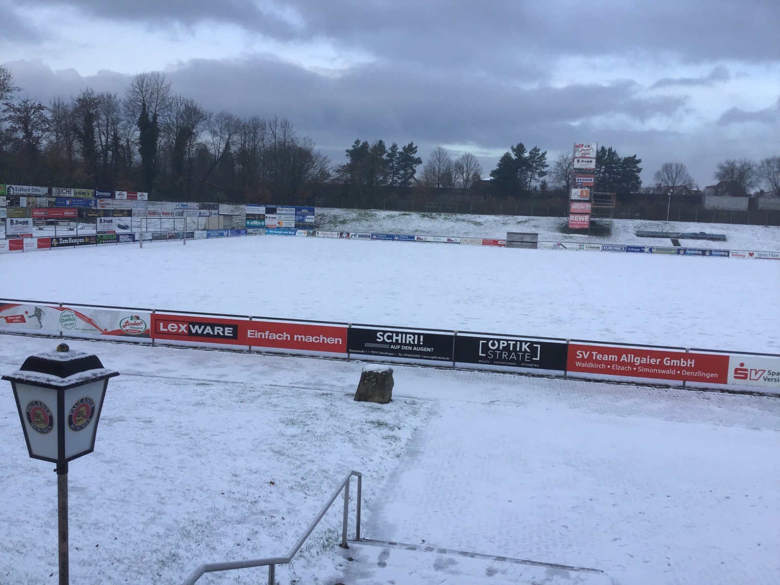 Der für Samstag, 22. November, geplante Rückrundenauftakt des VfR Aalen beim FC Denzlingen kann nicht wie vorgesehen stattfinden. Aufgrund starken Schneefalls und der daraus resultierenden Unbespielbarkeit des Platzes wurde die Partie kurzfristig abgesagt (siehe Bild unten).