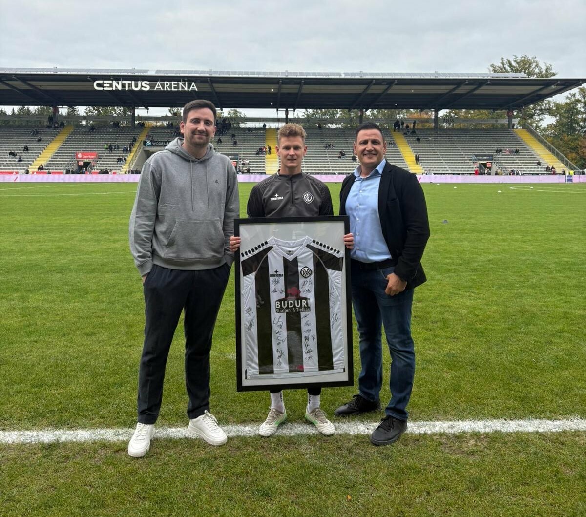 Am Spieltag gegen den SSV Reutlingen hat Benji Kindsvater das Trikot der neuen Saison an unseren Vorstand und Sponsor Mehmet Deli und Christian Rubin von Allfinanz/Generali überreicht. Mit dieser Trikotpatenschaft zeigen beide ihre Verbundenheit zu unserem Verein und unterstützen unsere Mannschaft, den Verein und die Region aktiv.