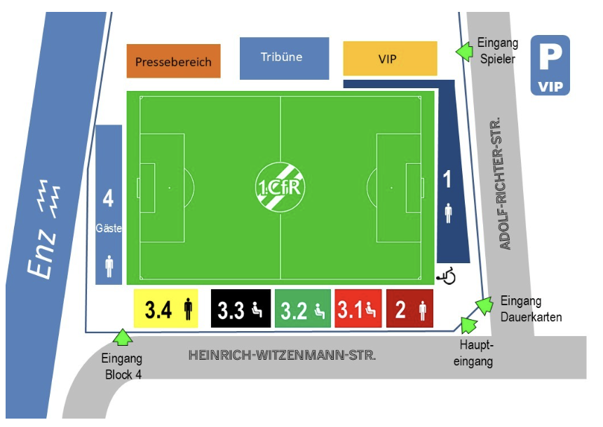 Das Spiel findet statt auf dem Rasenplatz der Pforzheimer KRAMSKI-ARENA, Adolf-Richter-Str. 3, 75179 Pforzheim